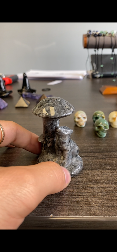 The wolf is a powerful spirit animal known for loyalty, instinct, and resilience, while the mushroom evokes mystery, growth, and natural wonder. Together, this carving serves as a reminder to trust your instincts and embrace the magic hidden in everyday life.